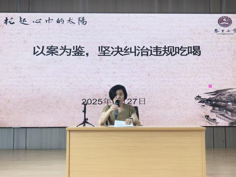 为切实让全体教师自觉维护光辉形象、恪守职业底线、严禁行为红线,6月27日,黎里小学召开师德师风警示教育大会。组织全体教师重点学习《中小学教师违反职业道德行为处理办法》《新时代中小学教师职业行为十项准则》等文件精神,进行“以案为鉴,坚决纠治违规吃喝”主题教育,深入开展理想信念教育、职业道德教育、法制教育和心理健康教育,将师德师风建设融入贯穿教师队伍建设的全过程。提醒全体教师以案为鉴,严守职业道德,绝不触碰红线,做到学为人师,行为世范。会后全体教师进行了师德师风应知应会检测,检测结果纳入个人师德档案,作为教师考核的重要内容。教师师德师风应知应会检测结果优良。